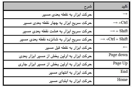 - کلید End باعث انتقال ابزار به انتهای مسیر و کلید Homeباعث انتقال آن به ابتدای مسیر میشود.