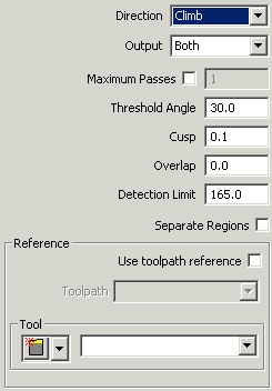 بخشی از مسیر ابزار را که در مقایسه با زاویه داده شده در Threshold Angle دارای شیب بیشتر نسبت به افق است، ایجاد میکند. - Both