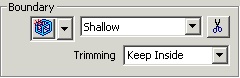 Boundary : در این بخش قادر به انتخاب محدوده ماشینکاری هستید. در ابتدا باید یک Boundary تعریف کنیـد و بـا انتخاب آن در این قسمت ماشینکاری فقط در محدوده Boundary انجام خواهد شد.