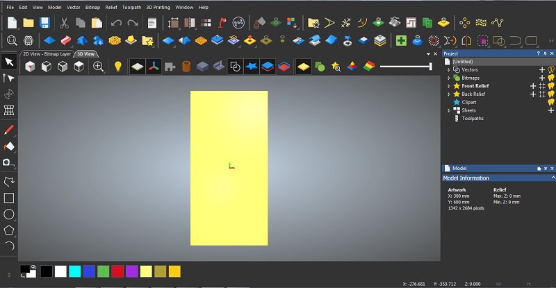 در سمت راست صفحه مورد نظر یک چهار ضلعی سفید رنگی را مشاهده می کنید این شکل نشان دهنده سطحی است که قرار است طرح های سه بعدی بر روی آن پیاده سازی شود. در مرکز این چهار ضلعی یک محور مختصات قرمز رنگ مشاهده می شود که با کلیک کردن در هر گوشه از این چهار ضلعی می توانید این محور مختصات را جابه جا کنید.