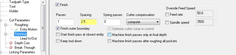 Feed rate,spindle speed: این گزینه سرعت پیشروی و سرعت دوران اسپیندل را در هنگام پرداختکاری تعیین می کند